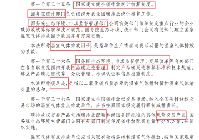 从法典可以看出:国务院统计部门负责国家级碳排放核算工作、生态环境部、市监总局负责核算标准和规范、生态环境部、统计局负责排放因子数据库、碳足迹核算相关标准、标识及分级管理各个部门自己管自己、生态环境部负责碳交易工作等等。