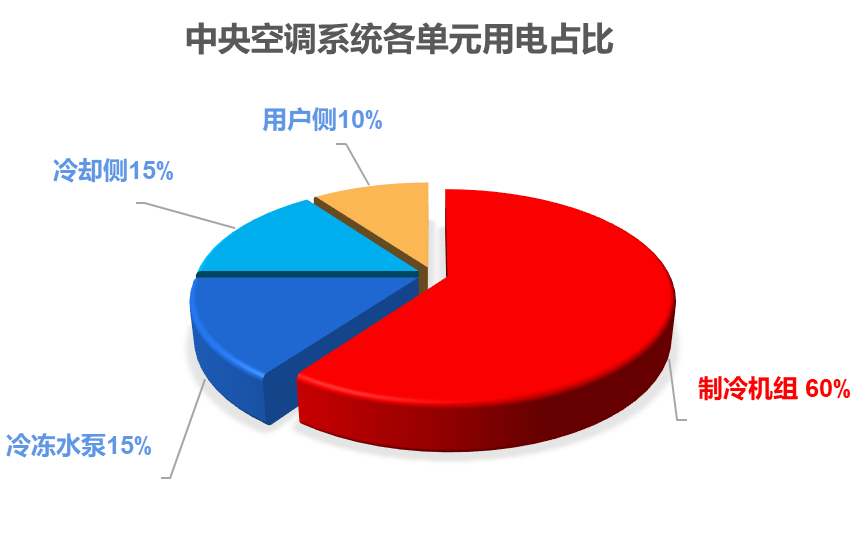中央空调系统的总能耗由多个子系统构成,其典型占比分布如下: