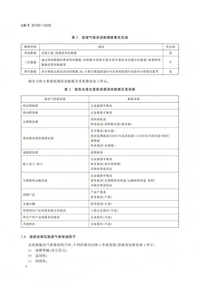 d)增加了报告主体使用外购非化石能源电力排放因子确定的要求(见7.5.6);